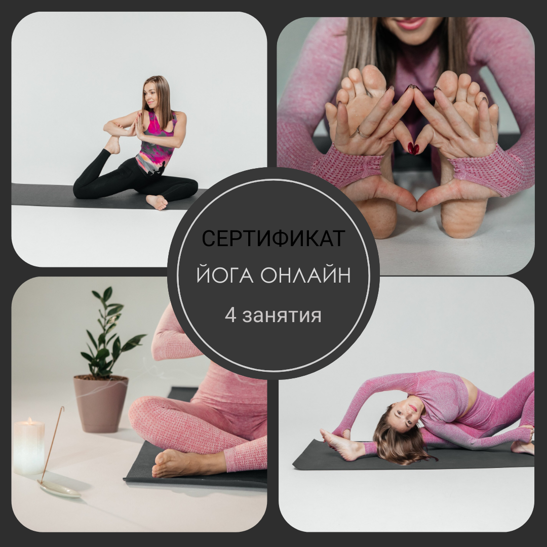 Сертификат дает право посетить 4 занятия онлайн йоги: